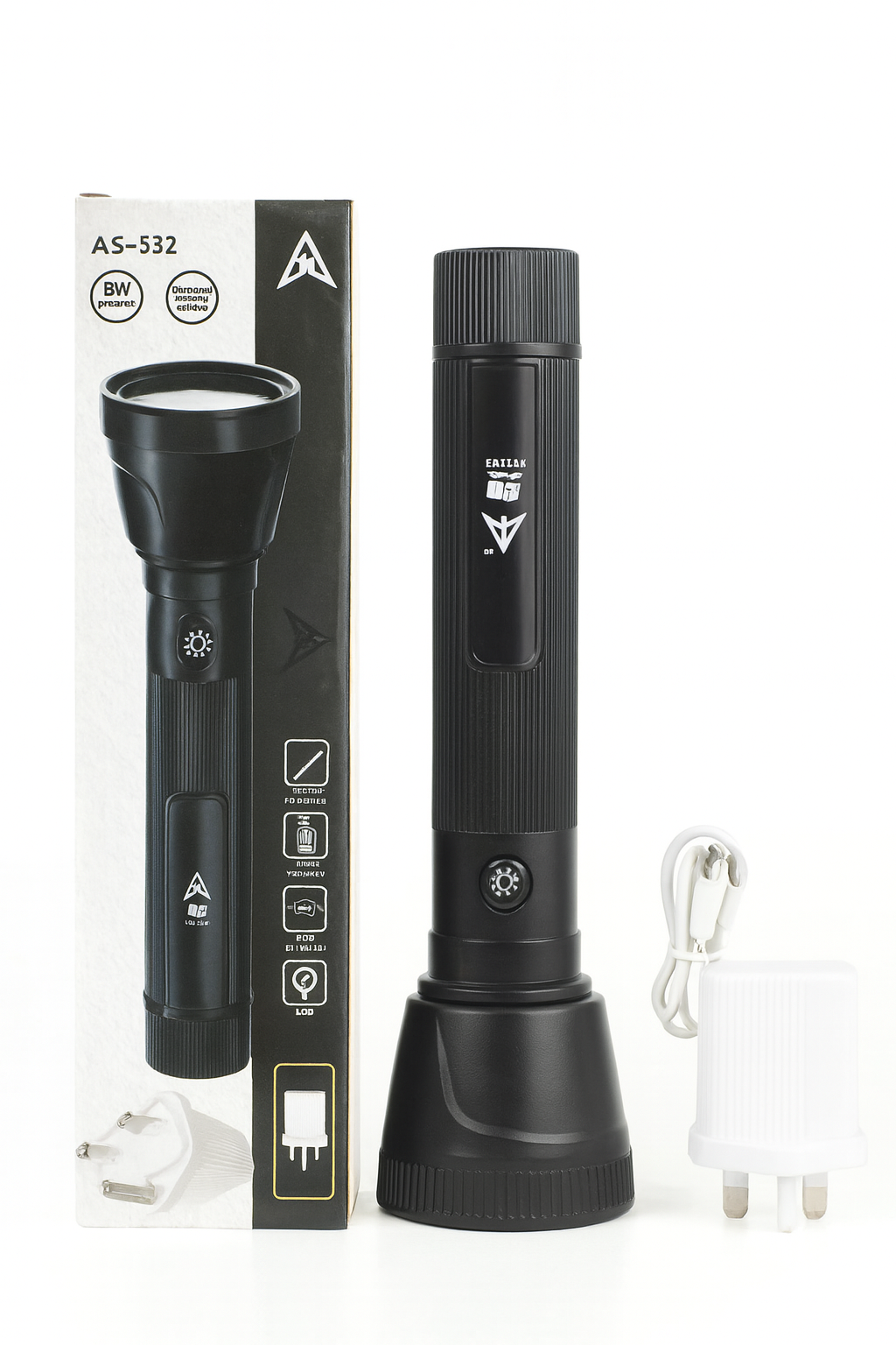 The AIKO AS-532 is a compact, high-performance rechargeable LED torch designed for daily use, outdoor activities, and emergency lighting. Equipped with a powerful LED and a long-lasting lithium battery, it delivers dependable brightness in a lightweight and easy-to-carry design.